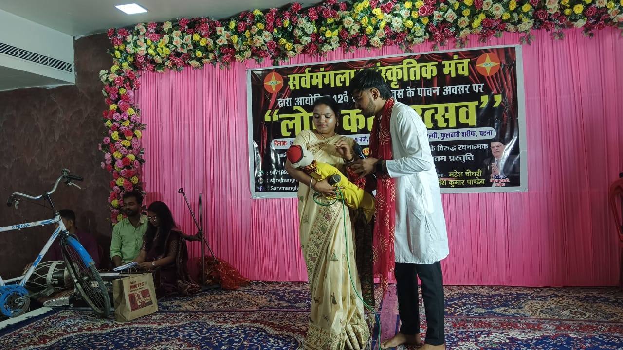 पटना (टीएचटी)। सर्वमंगला सांस्कृतिक मंच के 12वें स्थापना दिवस के अवसर पर रविवार को वाल्मी स्थित “यादें बैंक्वेट हॉल” में भव्य लोक कला उत्सव का आयोजन किया गया। कार्यक्रम का उद्घाटन बिहार सरकार के माननीय मंत्री रामकृपाल यादव, फुलवारी शरीफ विधायक श्याम रजक तथा नगर अध्यक्ष आफताब आलम ने संयुक्त रूप से दीप प्रज्वलित कर किया।